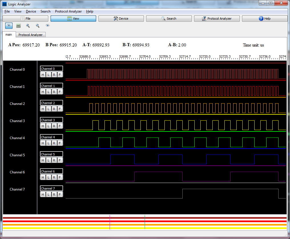 Nella modalità di analizzatore di protocollo, lo strumento è in grado anche di decodificare le transazioni tipiche dei bus seriali I2C, SPI, UART genearica e OneWire.