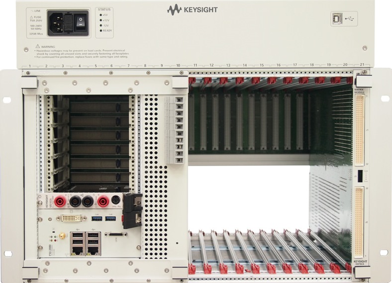Vi sono poi altre schede per pilotare un diverso mix di canali di carichi con correnti nominali fino a 40 A e un multimetro digitale PXI M9183A da 6,5 cifre ad alte prestazioni, oltre a un alimentatore N6951A della serie Advance Power System per alimentare il modulo di controllo.