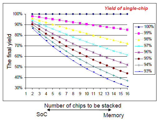 Le tecnologie di produzione dei circuiti integrati 2.5D e 3D Stack permettono di ottenere eccellenti miglioramenti in termini di densità, consumo energetico e prestazioni, ma scontrandosi con le difficoltà di manipolazione di die molto fragili, di dover controllare attivante le diverse escursioni di temperatura e di dover gestire in modo integrato la resa del processo (yield) risultante dala sovrapposizione di più chip singoli.