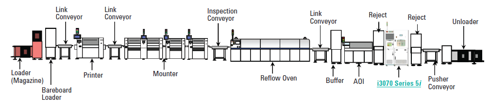 La nuova versione del sistema di collaudo automatico Medalist i3070 Series 5i Inline di Agilent è un tester in-circuit specificatamente progettato per essere inserito in linee di produzione automatizzate.