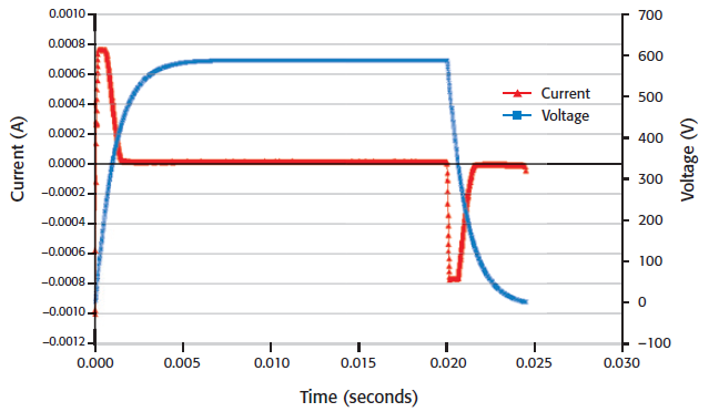 La risoluzione pari a 1 fA del multimetro integrato nel modello 2657A permette di effettuare misure veloci e accurate inferiori al pA anche nel caso in cui vengano erogate tensioni fino a 3000 V.