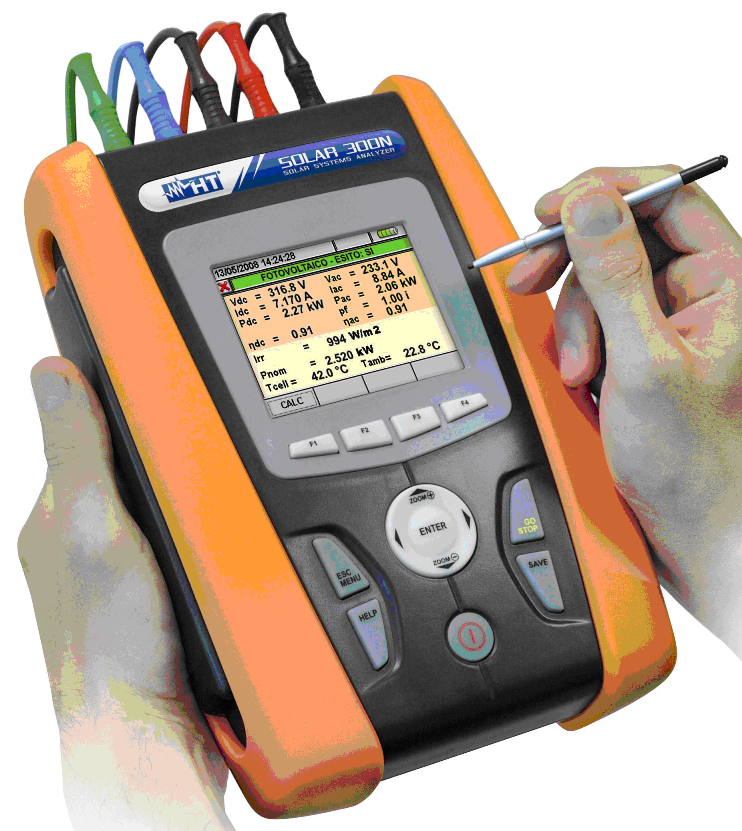 HT Italia propone l’innovativo strumento SOLAR300N per l’esecuzione simultanea di tutte le prove previste dal suddetto decreto al fine di verificare l’efficienza energetica (rendimenti) di impianti fotovoltaici monofase e trifase con indicazione di risultato positivo o negativo del collaudo.