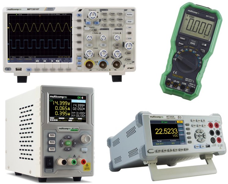 Farnell ha arricchito la gamma di strumenti di misura commercializzati con il proprio marchio Multicomp Pro con nuovi modelli di oscilloscopi da banco, portatili e basati su PC, alimentatori da banco, analizzatori di spettro, generatori di forme d'onda arbitrarie e attrezzature portatili per test, come multimetri digitali, calibratori e multimetri a pinza.