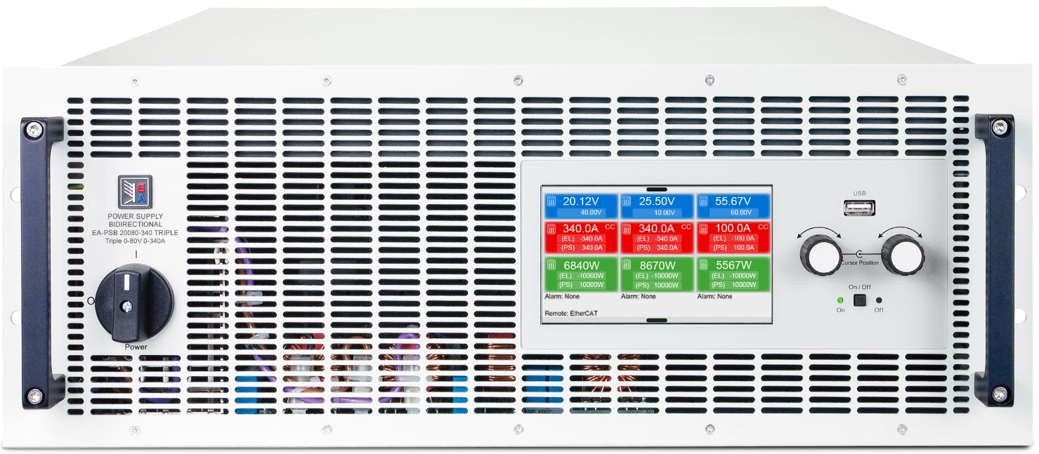 Gli strumenti della Serie EA-PSB 20000 Triple di EA Elektro-Automatik sono degli alimentatori DC bidirezionali a tre canali in grado di eseguire test paralleli ad alta densità di componenti di sistema complessi.
