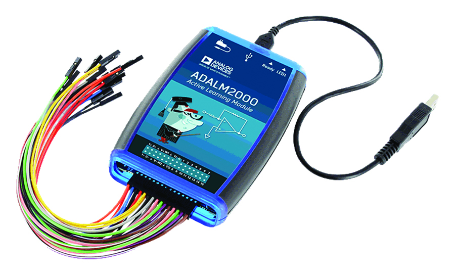 Il modulo didattico ADALM2000 di Analog Devices è uno strumento di misura completo collegabile via USB ad un qualunque PC che permette di apprendere i fondamenti dell'elettronica sperimentando direttamente il funzionamento di circuiti e sistemi.