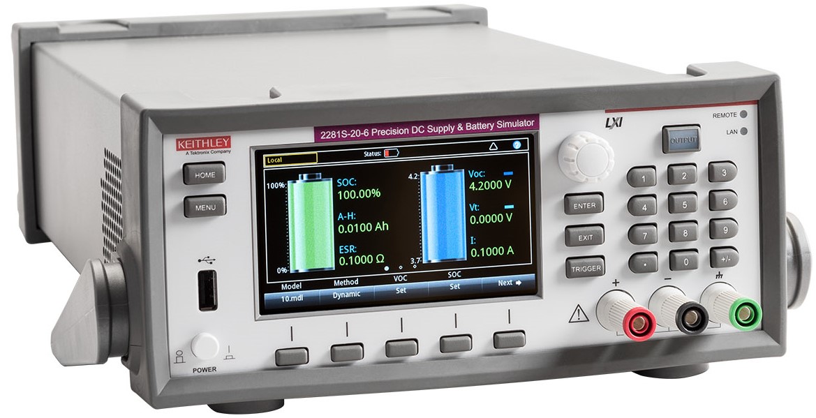 L'alimentatore di precisione in corrente continua Keithley 2281S ha la particolarità di poter simulare il comportamento di una batteria in modo molto realistico.