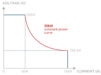 La caratteristica autoranging permette di sfruttare la potenza massima sul più ampio intervallo di tensioni e corrente operativeGli alimentatori della Serie EA-PSB 20000 Triple dispongono anche di una funzione di autoranging, che regola automaticamente la tensione o la corrente per fornire la piena potenza in un ampio intervallo operativo. Ciò consente di gestire una varietà di combinazioni di tensione e corrente con un unico alimentatore.