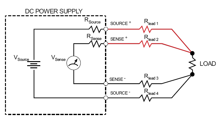 Per migliorare l'accuratezza delle tensioni e correnti erogate in ogni condizione, gli alimentatori della serie PWS4000 sono dotati anche delle funzionalità di misura remota della tensione sul carico (remote sensing), grazie alla quale il circuito di retroazione dello strumento non viene influenzato dalla resistenza dei fili di collegamento del carico. Tramite un coppia di cavi paralleli, da collegare alle boccole Sense+ e Sense- dello strumento, l'alimentatore può misurare correttamente la tensione ai capi del circuito alimentato e garantire quindi che corrisponda esattamente a quella impostata dall'operatore.