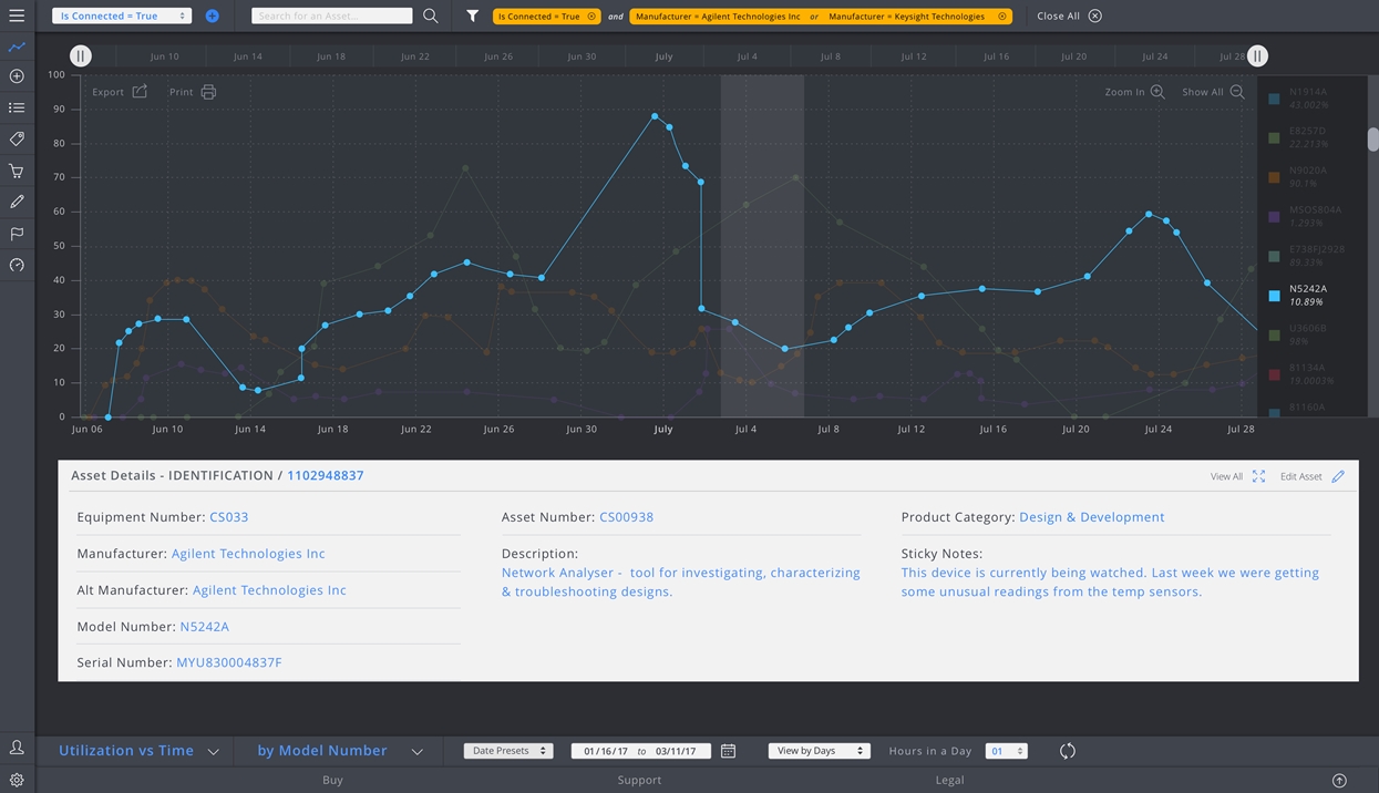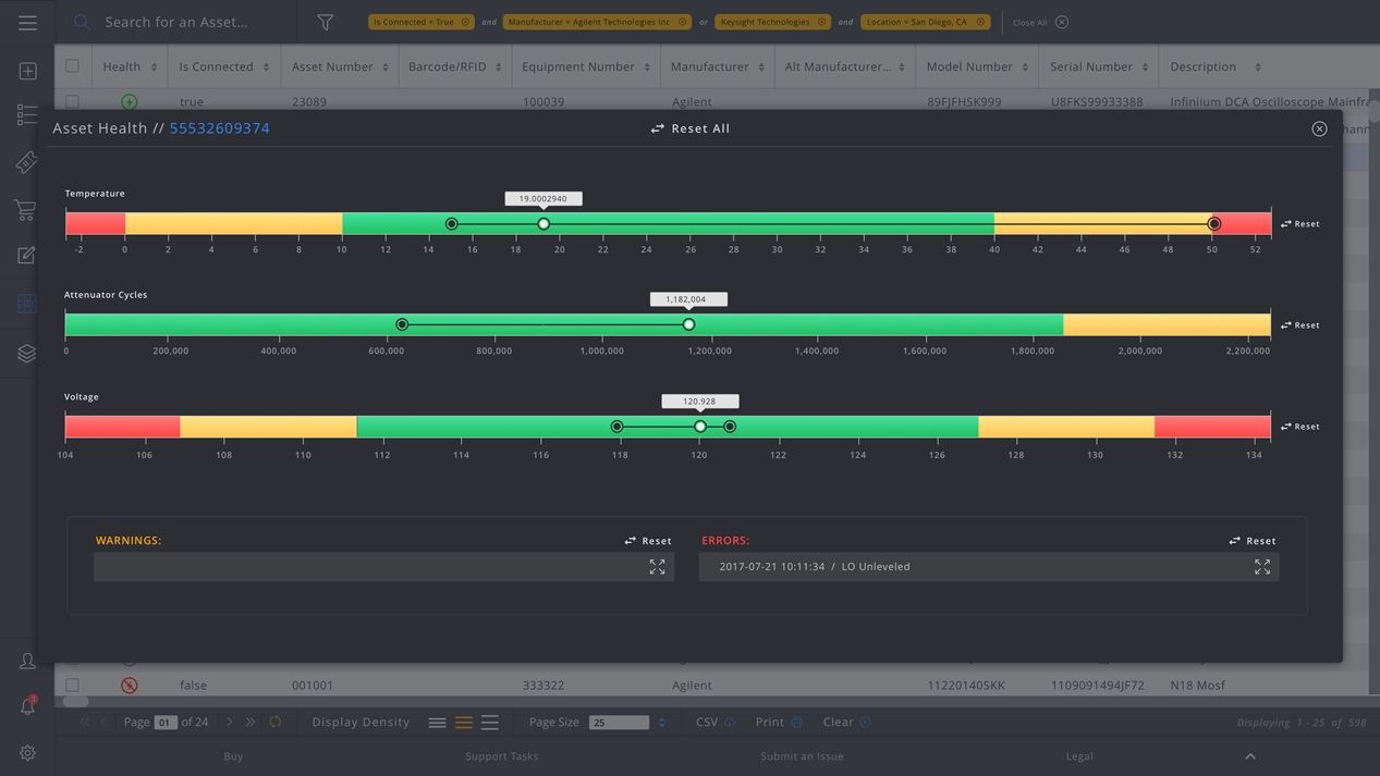 I Servizi di Ottimizzazione degli Asset proposti da Keysight permettono ai clienti di evitare spese inutili tramite il monitoraggio in tempo reale del tasso di utilizzo degli strumenti e del loro stato di salute, fornendo indicazioni utili su dove poter ottenere dei risparmi. Ottenere informazioni dettagliate e trasparenti sul proprio parco strumenti permette alle aziende di prendere decisioni adeguate sulle politiche di approvvigionamento attuali e future.