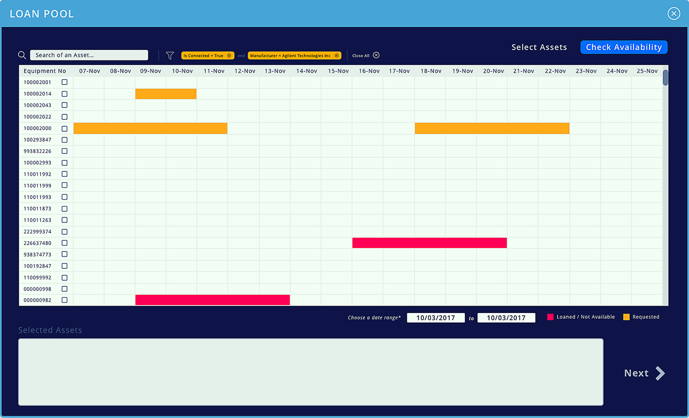 Una parte integrante dei Servizi di Ottimizzazione degli Asset è il software PathWave Asset Advisor, fruibile sia in modalità cloud che localmente. Il software PathWave Asset Advisor traccia e controlla le apparecchiature di test e misura, ne verifica lo stato di utilizzazione e di salute. Permette di gestire la condivisione degli strumenti all’interno dell’azienda ottimizzandone l’utilizzo.