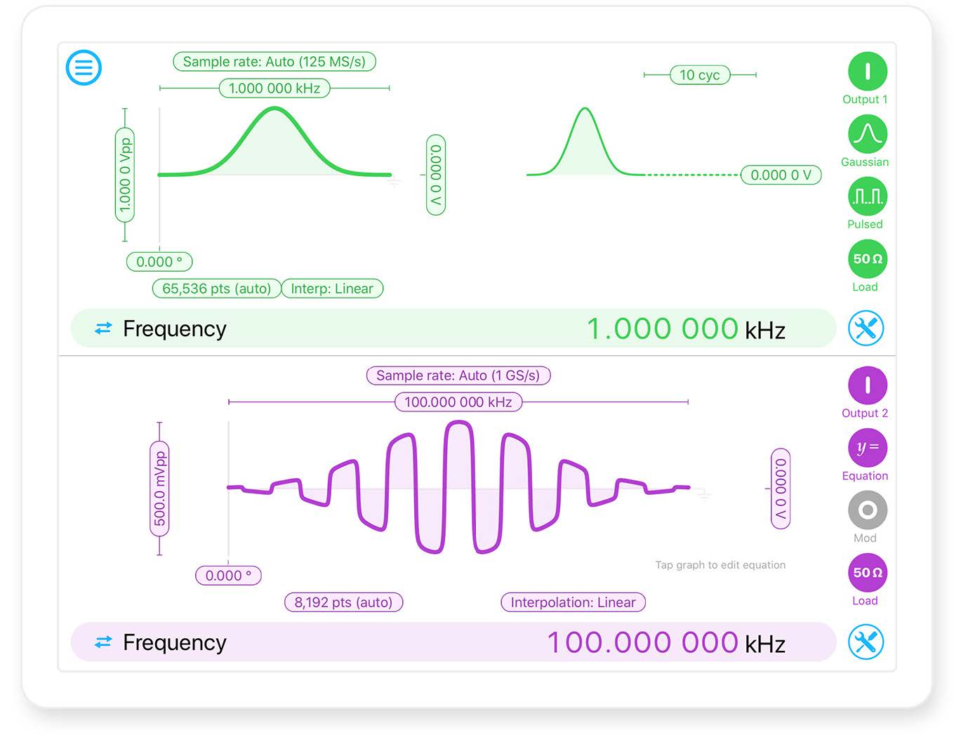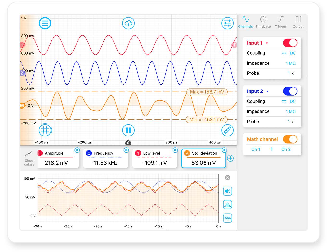 Il risultato è uno strumento di misura da laboratorio fruibile via PC o iPad con funzioni di oscilloscopio, generatore di forme d'onda arbitrarie, analizzatore di spettro, data logger e altri, a secondo delle opzioni software attivate.