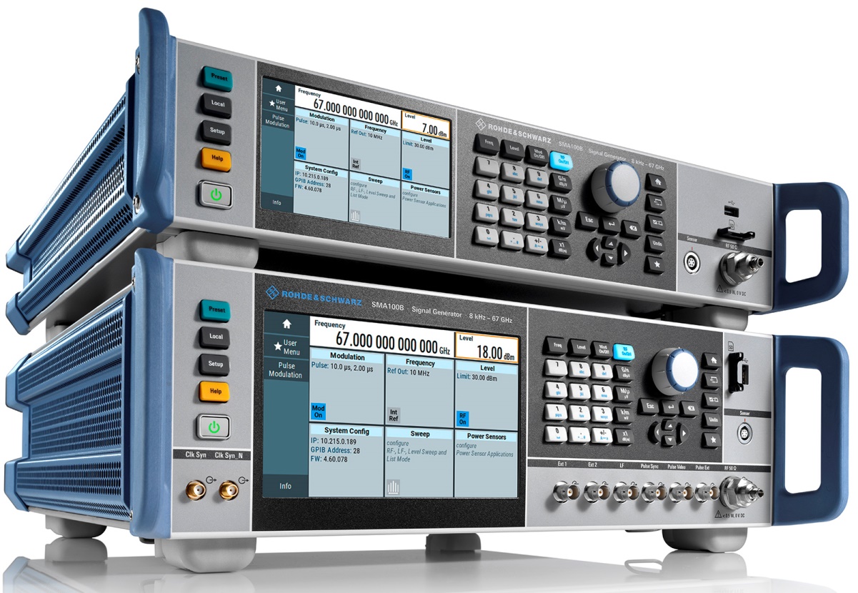 Il generatore di segnali a radiofrequenza e microonde R&S SMA100B di Rohde & Schwarz è stato potenziato per poter lavorare fino alla frequenza massima di 67 GHz, spingendosi fino a 72 GHz in modalità particolari.