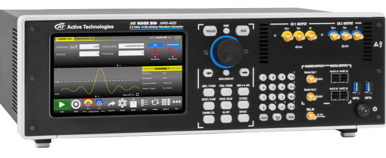 Il modello Arb Rider AWG-4022 è dotato di un schermo touch da 7 pollici che ne facilita la configurazione e utilizzo, sia come generatore di segnali classici, sia come generatore di forme d'onda arbitrarie avanzate e offre in opzione la possibilità di inserire 16 o 32 canali digitali, sincronizzabili con i 2 canali analogici.