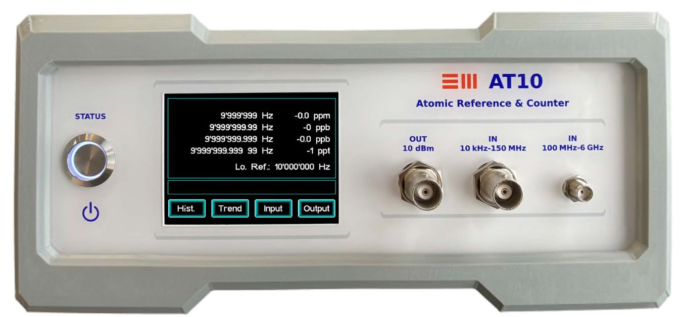 Lo strumento AT10 realizzato da Elettronica Monti svolge due funzioni: riferimento di frequenza al rubidio programmabile e contatore al rubidio di frequenza/fase.