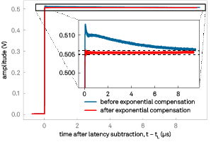 La funzione di pre-compensazione in tempo reale tiene conto dell'intera storia del segnale generato su lunghi intervalli temporali, senza occupare spazio nella memoria fisica dedicata alle forme d'onda; inoltre è compatibile con il sequenziamento dinamico, dove la forma d'onda è nota solo al momento dell'esperimento.