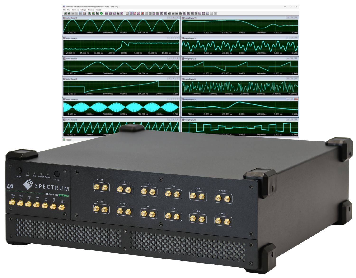 I generatori di forme d’onda arbitrarie DN6.63x con risoluzione a 16 bit offrono fino a 6 canali a 10 GS/s o fino a 12 canali a 5 GS/s di velocità di uscitaCon l'introduzione di queste 10 nuove varianti, Spectrum offre ora un totale di 47 diversi prodotti della famiglia di generatorNETBOX, che hanno la capacità di creare forme d'onda arbitrarie da un minimo di 40 MS/s a una velocità di uscita ultraveloce di 10 GS/s.