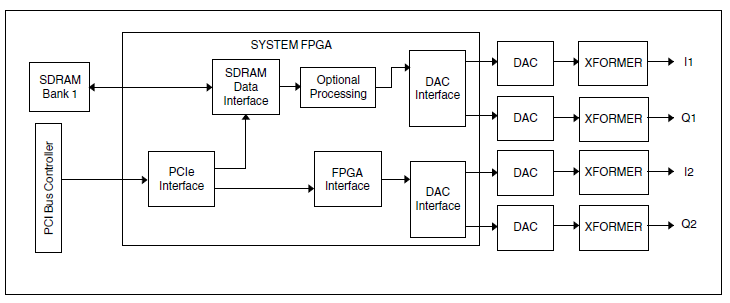 Ciascuno dei quattro DAC presenti sulla scheda CG4800 può lavorare alla massima frequenza di clock di 1,2 Gs/s generandono forme d'onda "single shot” oppure a ciclo continuo ripetuto a partire dalla memoria da 512 Ms presente sulla scheda stessa.