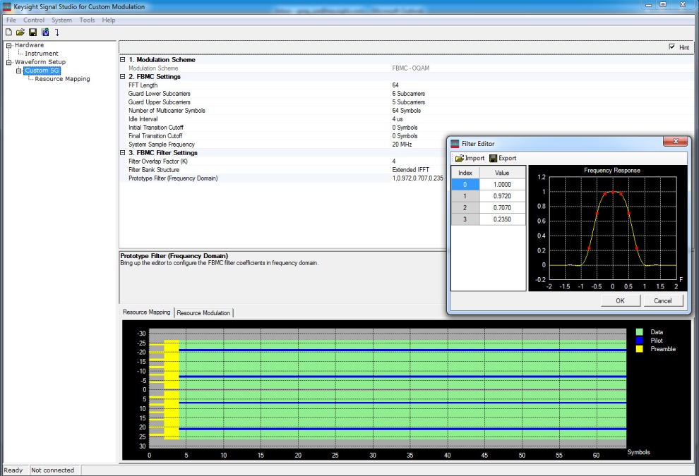Allo stesso modo, altre opzioni del pacchetto software di Keysight, come N7608B Signal Studio for Custom Modulation, permettono di sperimentare tutte le più recenti tecniche di modulazione e trasmissione che si candidano a diventare il prossimi standard di riferimento per le reti 5G di prossima generazione, ad esempio i vari tipi di sistemi a multiportanti, come FBMC (Filter Bank Multicarrier), oppure le numerose varianti delle modulazioni OFDM e dei più articolati sistemi di modulazione personalizzati basati sull'elaborazione dei segnali in fase e quadratura (I/Q).