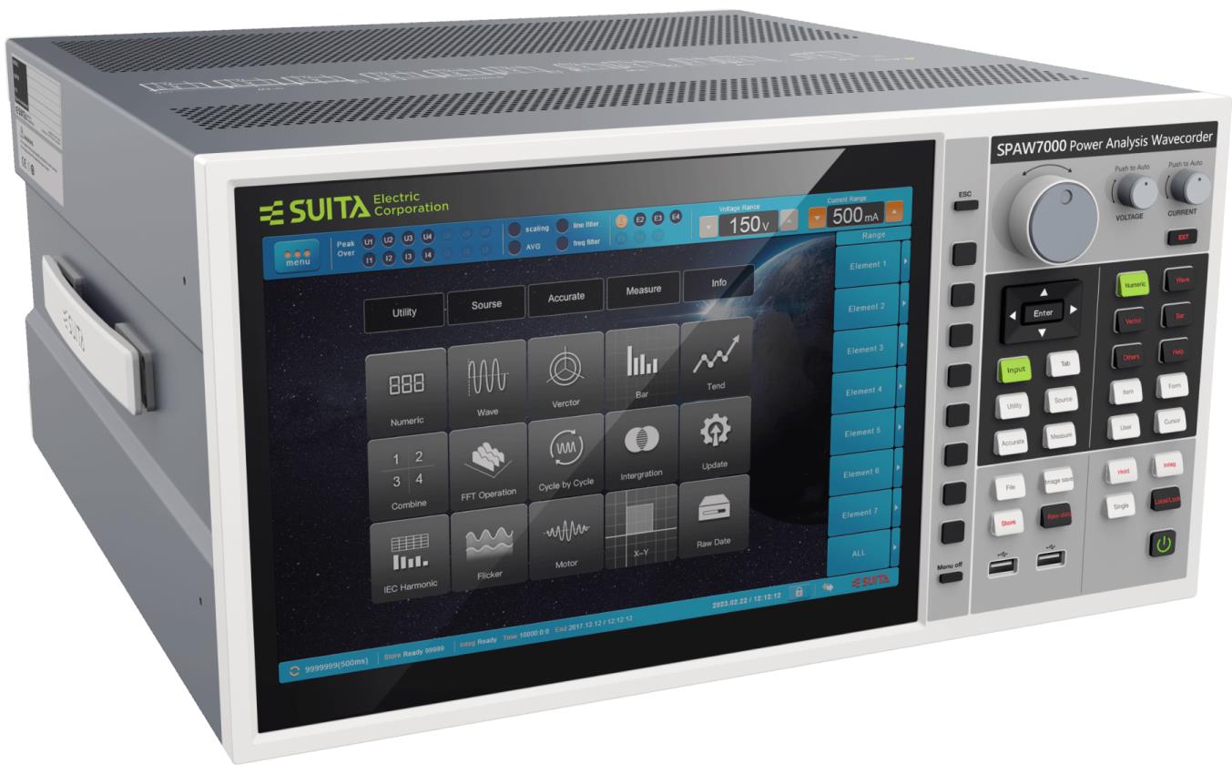 Lo strumento SPAW7000 della multinazionale giapponese Suita è un potente analizzatore di potenza e registratore dati multifunzionale che offre 7 canali di misura per l'analisi di potenza e 2 canali di misura per le caratteristiche del motore.