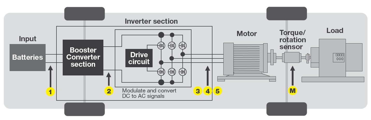Grazie ai 6 ingressi ad alte risoluzione e ad alta velocità, il wattmetro di precisione Yokogawa WT1800R permette di caratterizzare l'intera catena di trazione di un veicolo elettrico