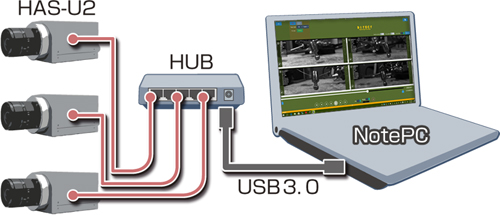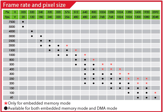 Le immagini acquisite possono essere trasferite dirattamente alla memoria interna o in modalità DMA ed essere trasferite a un PC esterno tramite l'interfaccia USB 3.0.