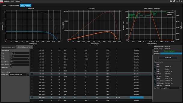 La soluzione offerta da Keysight offre una modalità semplice e garantita di effettuare correttamente le prove con un pacchetto software che, con il semplice inserimento dei parametri di base, come Pmp, Vmp, etc., produce automaticamente tutti i report formattati come richiesto dallo standard EN50530, oltre a un file di log dettagliato di tutte le misure eseguite durante la procedura di test.