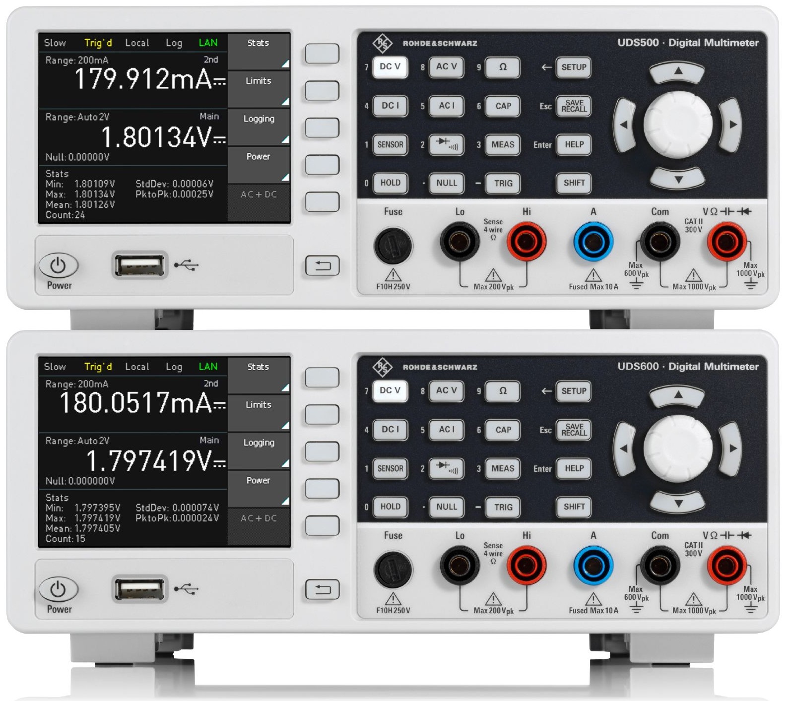 Caratterizzati da grande versatilità e precisione, i multimetri possono visualizzare contemporaneamente tre funzioni di misura, semplificando i flussi di lavoro di test. Oltre alle 12 funzioni di misura standard, i multimetri R&S UDS offrono funzioni statistiche e matematiche integrate e un'interfaccia utente intuitiva.
