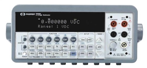 Il modello M3500A di Picotest è un multimetro digitale da banco con risoluzione da 6½ digit e caratterizzato da un'accuratezza dello 0,0015% sulle 24 ore sulla tensione DC (portata 10V) e dello 0,002% sulla misura di resistenza (portata 10k?).