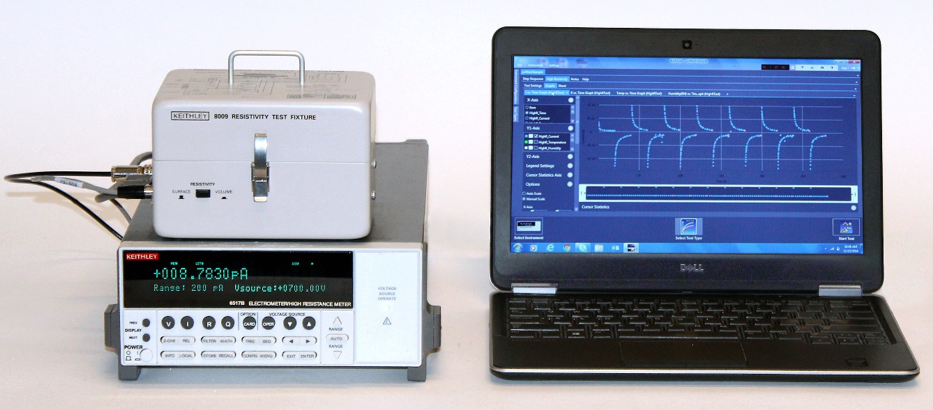 Progettata per utilizzare gli elettrometri Keithley Model 6517B Electrometer e la camera per prove di resistività Model 8009, la nuova soluzione applicativa Model KICKSTARTFL-HRMA permette di automatizzare l'esecuzione di prove di resistività (volume resistivity) e di resistività superficiale (surface resistivity) per ottenere ottenere risultati accurati e ripetibili senza alcuna necessità di programmazione.