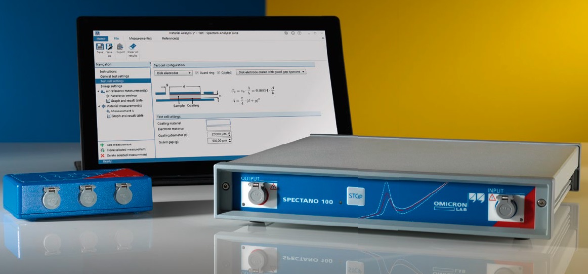 Lo strumento Spectano 100 realizzato da Omicron Lab combina in uno stesso dispositivo le capacità di misura offerte dai metodi PDC e FDS per materiali solidi e liquidi su un'ampia gamma di frequenze comprese tra 5 µHz a 5 kHz.