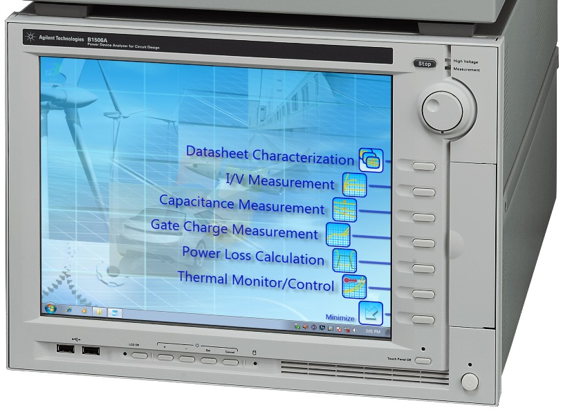 L'analizzatore di dispositivi di potenza Agilent B1506A misura e valuta ogni genere di parametro tipico di un semiconduttore di potenza, tra cui curve sul piano I-V (ad esempio tensione di rottura a resistenza di conduzione), capacità a tre terminali (Ciss, Coss e Crss) con tensioni di polarizzazione elevate; carica di gate, tempo di commutazione e perdite di potenza.