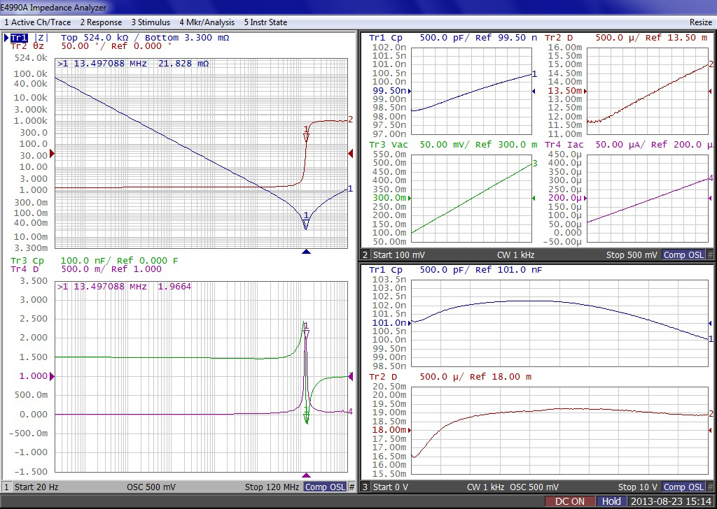 Lo strumento E4990A coprre la gamma di frequenze da 20 Hz a 10/20/30/50/120 MHz ed è l'erede del ben noto analizzatore di impedenza Agilent 4294A.