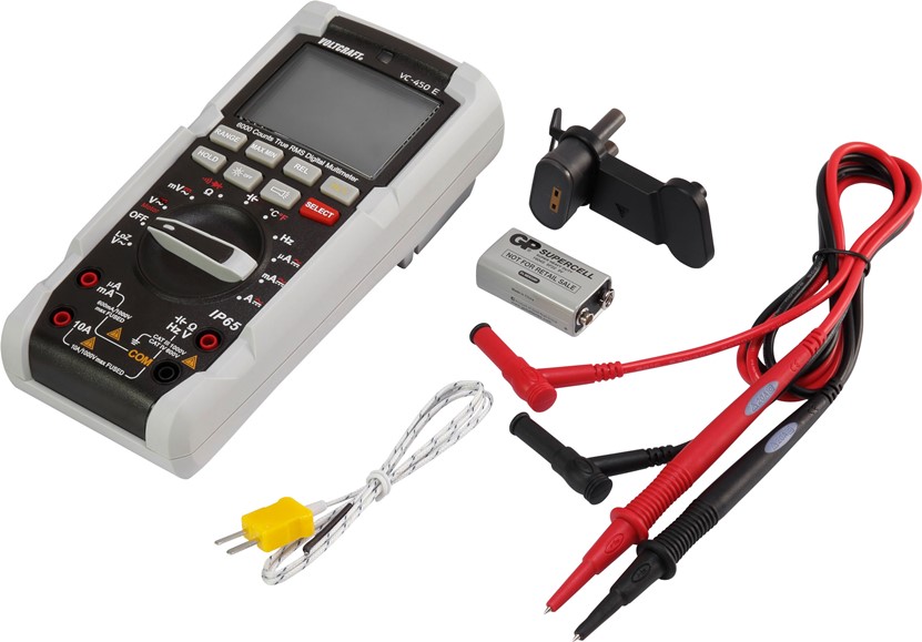 Il multimetro VC-450 E offre le stesse funzionalità del modello VC-440 E, ma con l’aggiunta della capacità di misurare un campo rotante e la temperatura.