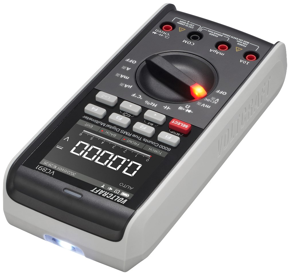 Multimetro Voltcraft VC-891 con torcia, display TFT e selettore illuminatoIl modello di punta della nuova famiglia di multimetri Voltacraft, VC-891, è dotato di un display TFT ben visibile da ogni angolazione e con un contrasto eccezionale, che può essere configurato individualmente in base alle condizioni di illuminazione ambientali e alle preferenze personali.