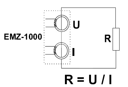 La pinza contiene al suo interno una bobina per la generazione di tensione e una bobina di misura della corrente, così da poter determinare la resistenza del circuito in esame semplicemente afferrando la linea con le ganasce della pinza.