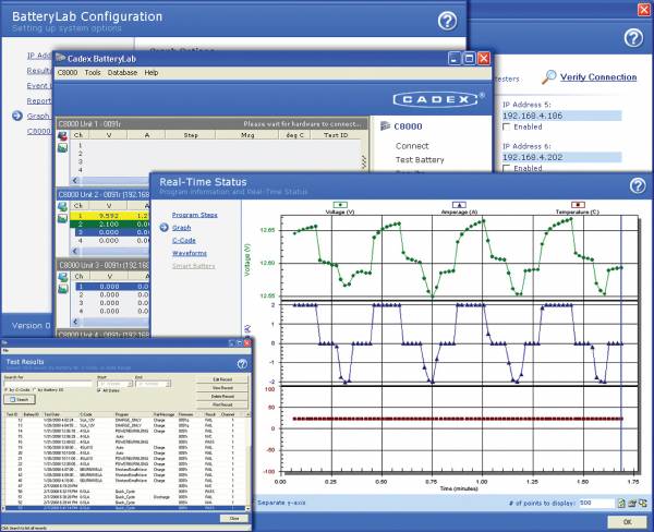 Oltre allo strumento hardware e i relativi accessori, Cadex propone il software dedicato all'analisi della batterie BatteryLab, oltre ai classici driver per realizzare in proprio routini di misura e collaudo automatico.