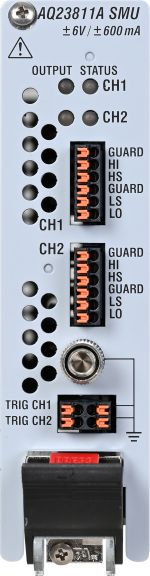 Modulo SMU AQ23811A a 2 canaliGrazie alle sue caratteristiche intrinseche di produttività ed espandibilità, il modulo SMU a 2 canali consente inoltre di risparmiare tempo e spazio durante l'esecuzione delle delle misure, tipicamente complesse, essenziali per la caratterizzazione dei dispositivi a semiconduttore.