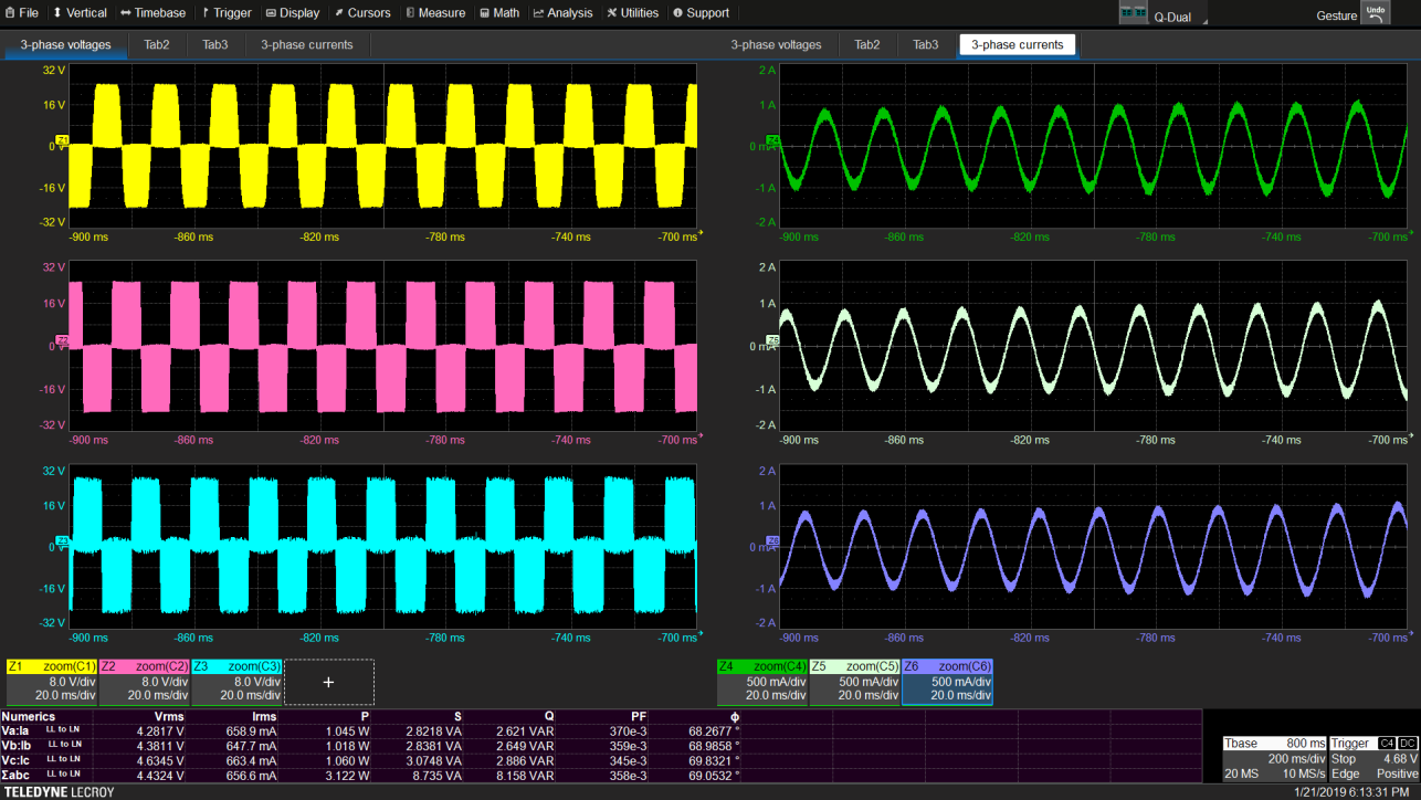 Denominato 3-Phase Power Analysis, il pacchetto software mette a disposizione funzioni pronte all'uso per l'analisi della potenza statica e dinamica, monofase e trifase con gli oscilloscopi a 12 bit ad alta definizione HDO8000A, HDO6000A e WavePro HD.