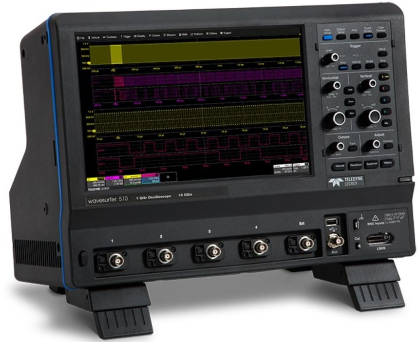 Teledyne LeCroy ha presentato il suo nuovo oscilloscopio WaveSurfer 510, uno strumento a 4 canali con una larghezza di banda di 1 GHz che offre una frequenza di campionamento massima simultanea su tutti i canali fino a 10 GS/s.
