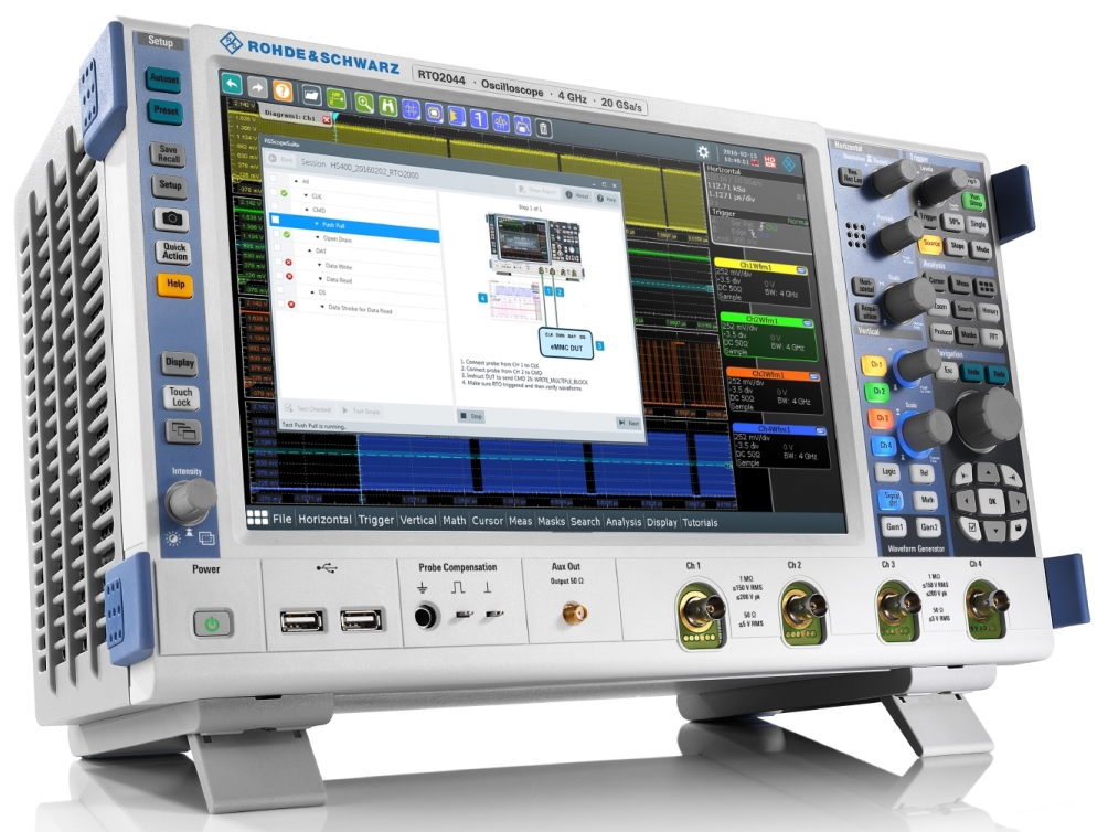 Per facilitare la verifica del corretto funzionamento dei segnali di interfaccia sul bus di memorie eMMC, Rohde & Schwarz ha messo a punto uno specifico pacchetto software installabile sulla sua famiglia di oscilloscopio RTO, compresi quelli di ultima generazione.