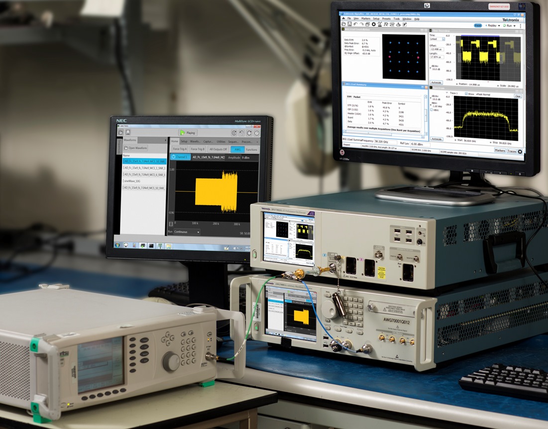 Un esempio significativo la nuova soluzione proposta da Tektronix per i suoi oscilloscopi della serie DPO70000SX dedicata alle misure di EVM e altri parametri di modulazione dei trasmettitori per reti wireless 802.11ad (WiGig) funzionanti nella banda dei 60 GHz.