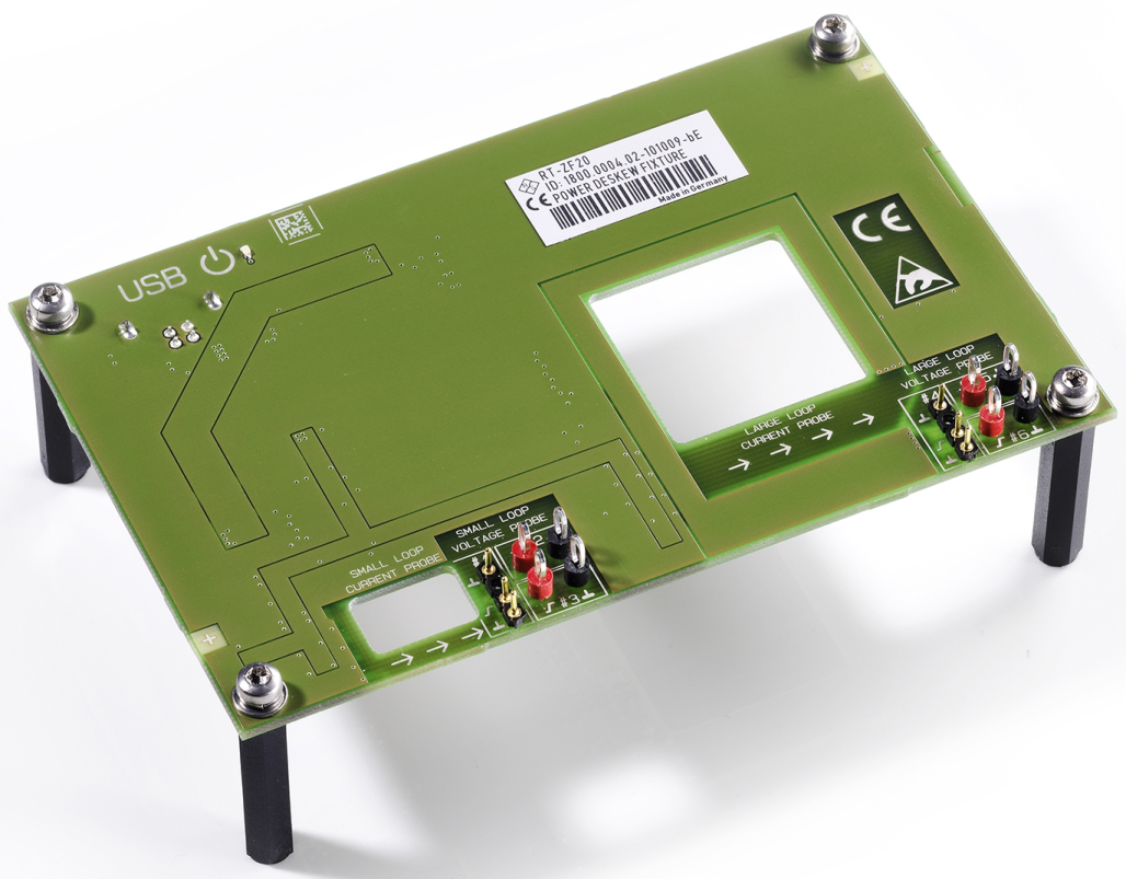 Per facilitare l'allineamento temporale (deskew) dei segnali acquisiti con sonde di corrente e tensione diverse, Rohde & Schwarz ha sviluppato un apposito accessorio sotto forma di scheda elettronica (fixture) alla quale si collegano le sonde dell'oscilloscopio.