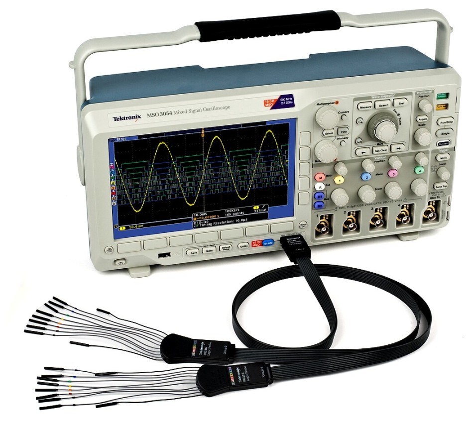 La serie MSO3000 offre fino a 4 canali analogici e 16 canali digitali, larghezza di banda da 100 a 500 MHz, profondità di memoria di 5M e frequenza di campionamento di 2,5 GS/s.