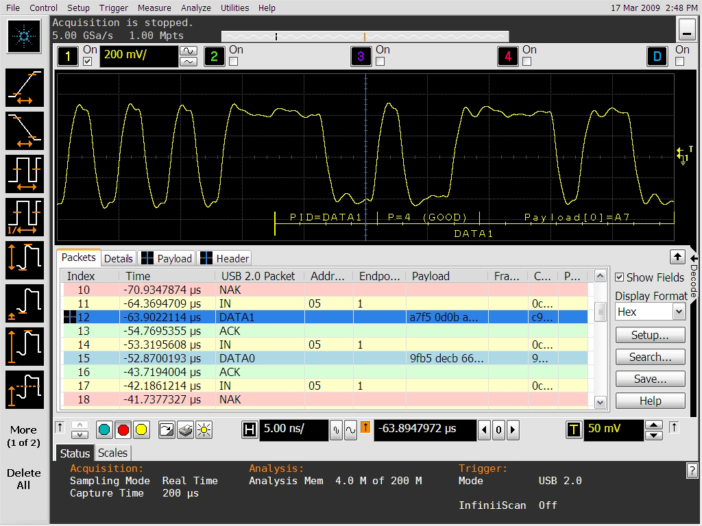 Gli strumenti della serie MSO70000 hanno 20 canali di acquisizione (4 analogici e 16 digitali) con una larghezza di banda che varia da 4 a 20 GHz e con una risoluzione temporale sui canali digitali pari a 80 ps.