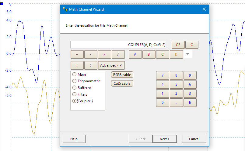 La soluzione PicoScope Software Directional Coupler utilizza invece due punti di misura delle tensione differenziale posti a una distanza nota che, conoscendo la velocità di propagazione sui cavi standard RG58 o Cat5, permettono di separare le forme d'onda dei dati trasmessi nelle due direzioni.