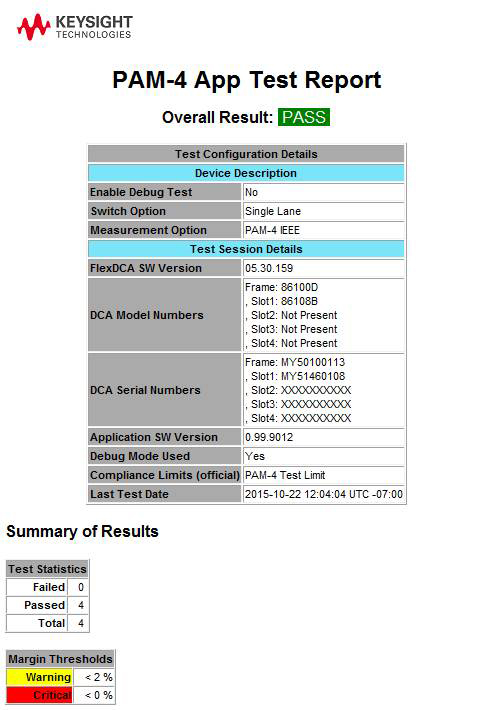 Report conformità segnali PAM-4I nuovi pacchetti software di analisi dei segnali PAM-4 Keysight N8836A e N1085A, rispettivamente per gli oscilloscopi in tempo reale e a campionamento, sono in grado di interpretare e facilitare la caratterizzazione dei segnali secondo gli standard Common Electrical Interface (OIF-CEI 4.0) per le comunicazioni a 56G definito da Optical Internetworking Forum e il nuovo standard 400 Gigabit Ethernet (P802.3bs) definito da IEEE.