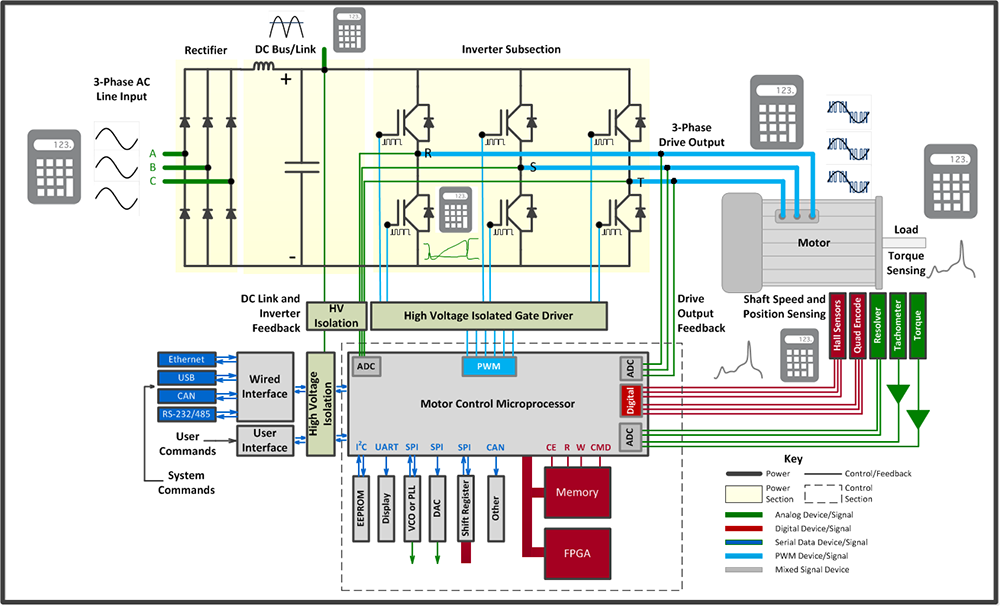 Il software consente anche di interpretare facilmente il segnale di retroazione proveniente praticamente da qualunque tipo di sensore, come tachimetri analogici e digitali (a impulsi), sensori Hall per motori brushless (BLDC), encoder con segnali di uscita in quadratura e resolver. Inoltre, i segnali dei sensori di Hall e degli encoder digitali possono essere acquisiti tramite i canali digitali, preservando i canali di ingresso analogici per verificare altri segnali.