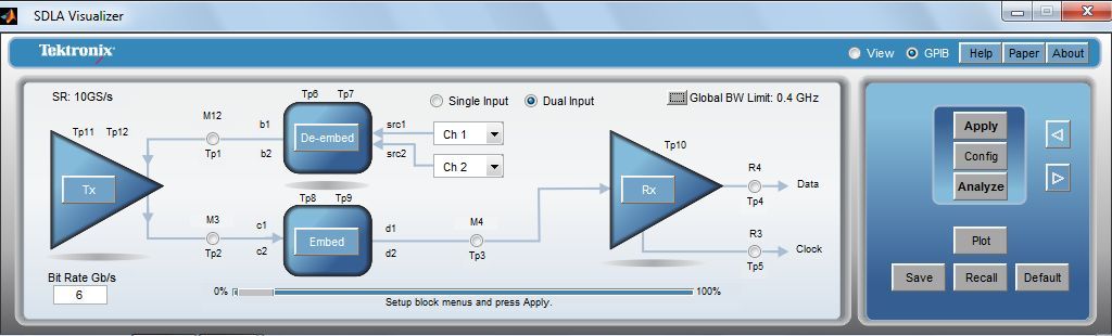 SDLA Visualizer usato assieme al pacchetto software DPOJET dedicato all'analisi del jitter tramite diagrammi a occhio consente di validare i risultati delle misure relative all'occhio e al jitter esamninandoli in vari punti della catena di trasferimento del segnale garantendo in tal modo che il modello utilizzato sia configurato correttamente.