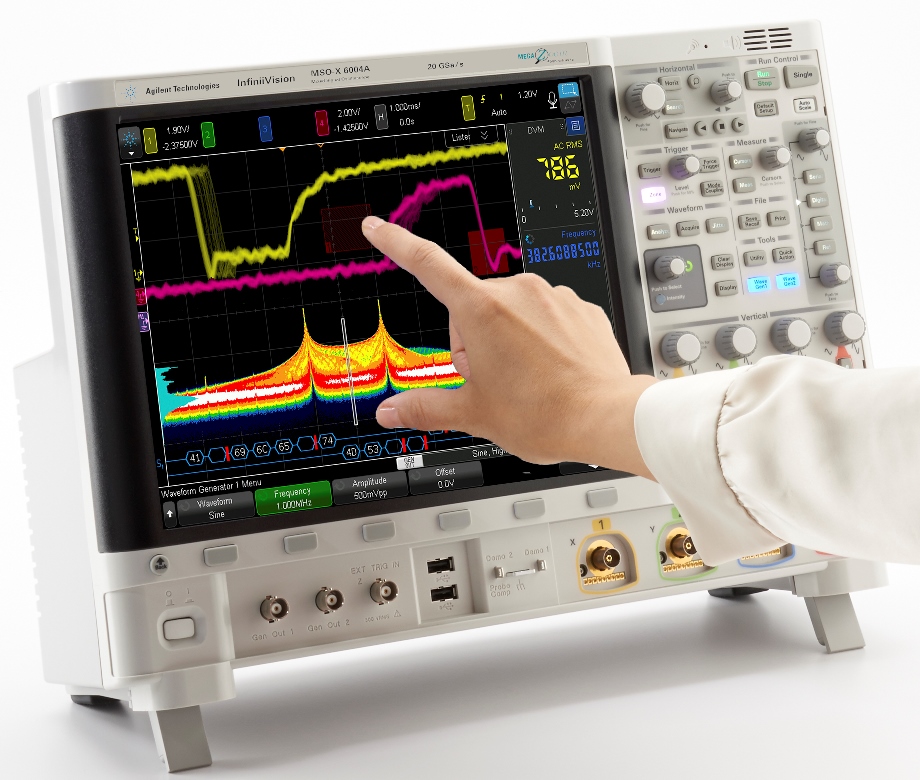 Gli oscilloscopi Agilent InfiniiVision 6000 Serie X estendono le funzionalità integrate a quelle di sei strumenti di misura in uno solo: oscilloscopio, analizzatore logico (MSO), analizzatore di protocollo, generatore di funzioni e forme d’onda arbitrarie a due canali WaveGen, voltmetro digitale e, novità introdotta in questa gamma, contatore totalizzatore a 10 cifre. Il nuovo contatore a 10 cifre ha una larghezza di banda di 3,2 GHz e il totalizzare conteggia, oltre ai fronti, gli eventi qualificati dal trigger.