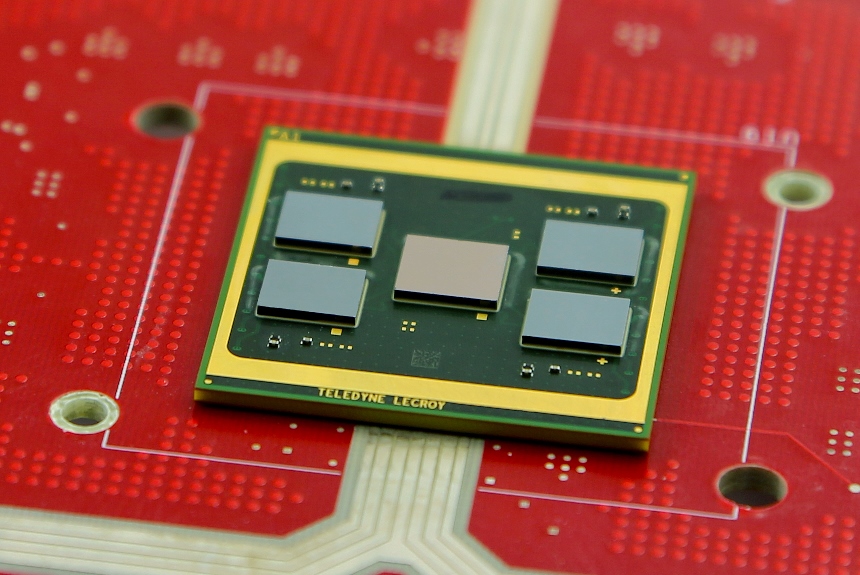 Il cuore del WavePro HD è un nuovo chipset da 8 GHz che comprende uno stadio di ingresso (front-end) a basso rumore ed un ADC da 12 bit. Questo componente, altamente integrato in una architettura di sistema a larga banda e basso rumore, permette per la prima volta di sfruttare tutta la potenzialità della tecnologia ad alta definizione HD4096, in un oscilloscopio da 8 GHz a 12 bit.